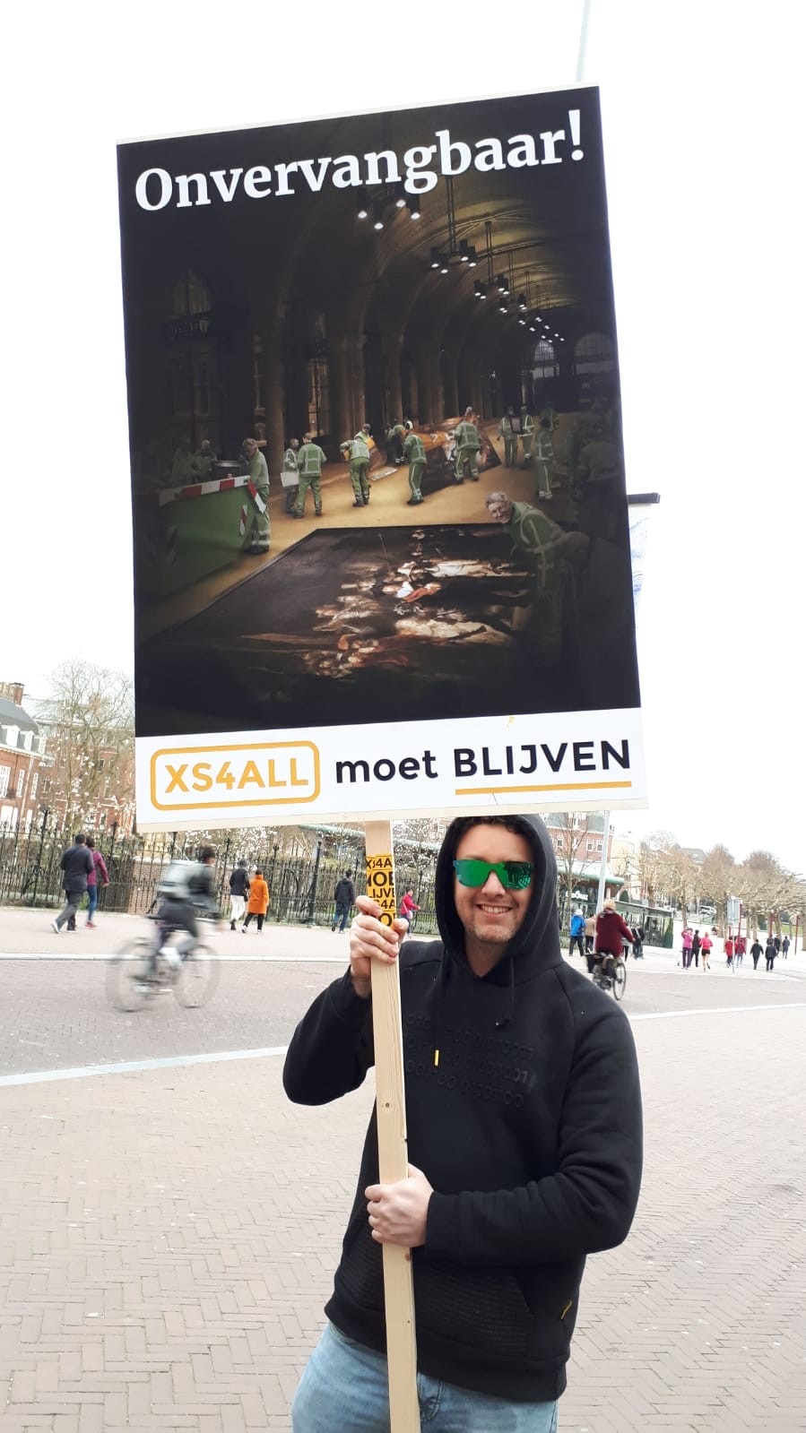 Wanneer KPN in het Rijksmuseum een besloten bijeenkomst houdt met de top 75 medewerkers van het bedrijf, laat het actiecomité van zich horen. Met grote letters ‘I AM XS4ALL’ nemen actievoerders plaats voor de ingang van het Rijksmuseum. KPN-medewerkers krijgen een flyer met het verzoek het ‘culturele interneterfgoed XS4ALL’ niet te verkwanselen.